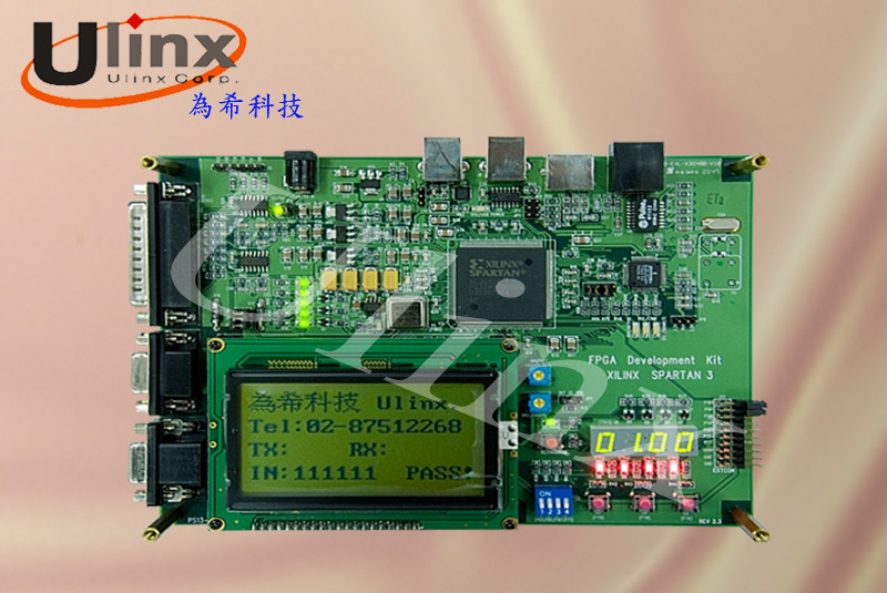 Ulinx Spartan3AN發展板採用Xilinx最新一代Spartan-3AN-XC3S50AN FPGA晶片,除了提供作為一般VHDL / VERILOG驗證的發展板以外,搭配使用者擴充插槽,將可自行開發與應用在不同的應用領域。此發展板除了包含5萬邏輯閘的FPGA之外,板子上亦包含I/O、DIP switch、Push button、LED、7_Segment等相關的週邊設備。