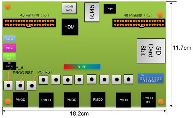 二、MorFPGA Duo周邊系統模組電路板規格示意圖